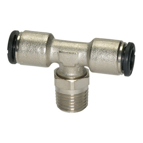- T-Steckverschraubung »click-clock«, drehbar, R 1/8 a., für Schlauch-Außen-Ø 8 mm, Arbeitsdruck max. 16 bar, Messing vernickelt