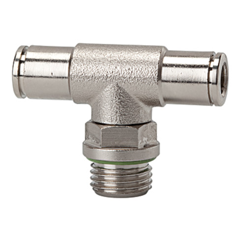 - T-Steckverschraubung »metallica«, drehbar, G 1/8 a., für Schlauch-Außen-Ø 6 mm, Arbeitsdruck max. 16 bar, Messing vernickelt