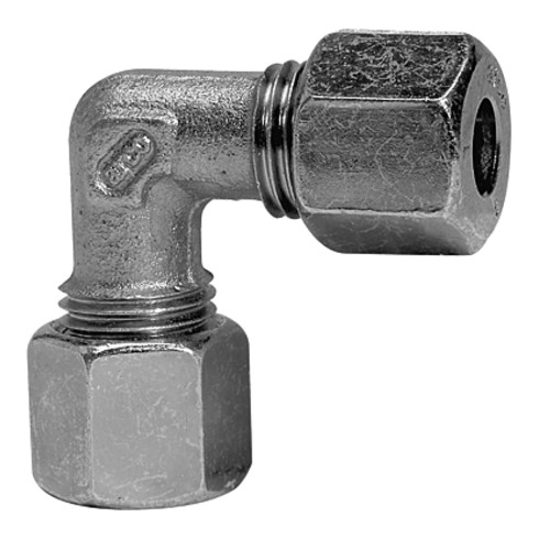 - Winkel-Verschraubung, Rohr-Außen-Ø 22 mm, PN max. 160 bar, SW1 36, SW2 27, Stahl verzinkt