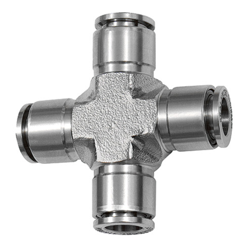 - X-Steckverbindung, für Schlauch-Außen-Ø 8 mm, Arbeitsdruck max. 20 bar, Edelstahl 1.4404. Für den Einsatz in aggressiveren Umgebungen und bei korrosiven Medien