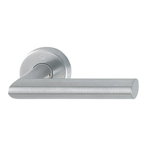 Edelstahl-Rosetten-Türgriff-Halbgarnitur mit Rosetten-Montagemodul, ohne Schlüsselrosette, für Außentüren (Innenseite)· Lagerung: Türgriff lose, Rückholfeder rechts/links verwendbar, wartungsfreies Gleitlager · mit Schnellstift-Verbindung (Vollstift), vormontiert in der Unterkonstruktion · Unterkonstruktion: Stahl, Stütznocken, für Aluminium-, Holz- und Kunststofftüren · Befestigung: verdeckt, zusätzliche 4-fach diagonale Befestigungsmöglichkeit, für Mehrzweckschrauben · Weitere technische Eigenschaften Drückerlänge: 125mm · Drückertiefe: 59mm