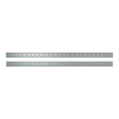 biegsam · aus rostfreiem, hartgewalztem Federstahl · scharfes Teilungsbild · die Teilung ist weitgehend abriebfest · unempfindlich gegenüber Chemikalien, Fetten oder Ölen · gute Ableseeigenschaften durch matte Oberflächen · gerundete Kanten · EG-Genauigkeitsklasse II · Weitere technische Eigenschaften Teilung Unterkante: 1/1mm • Teilung Oberkante: 1/2mm