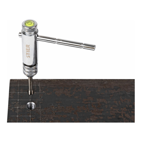 - Ein versenktes Zentrierauge ermöglicht ein einfaches Ausrichten der Gewindeschneider und garantiert gute Schneidergebnisse