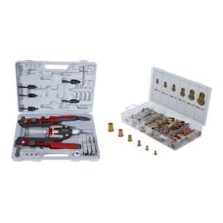 - Umfangreicher Satz an Mundstücken und Dornen zur Abdeckung der wichtigsten Nietfälle