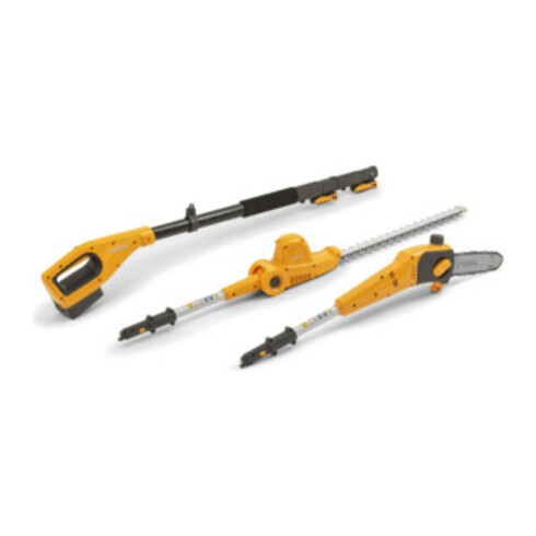 - Maximale Arbeitshöhe von bis zu 4 m mit dem Entaster-Aufsatz und 4,3 m mit dem Heckenscheren-Aufsatz