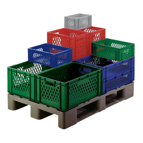 aus Polypropylen · lebensmittelecht · zum Transportieren, Lagern, Sortieren usw. · die Kastengrößen sind auf das Palettenmaß 1200 x 800 mm abgestimmt · Boden geschlossen, Seitenwände durchbrochen Weitere technische Eigenschaften: · Seitenwände: durchbrochen · Innenhöhe: 255mm · Innenlänge: 356mm · Innenbreite: 255mm