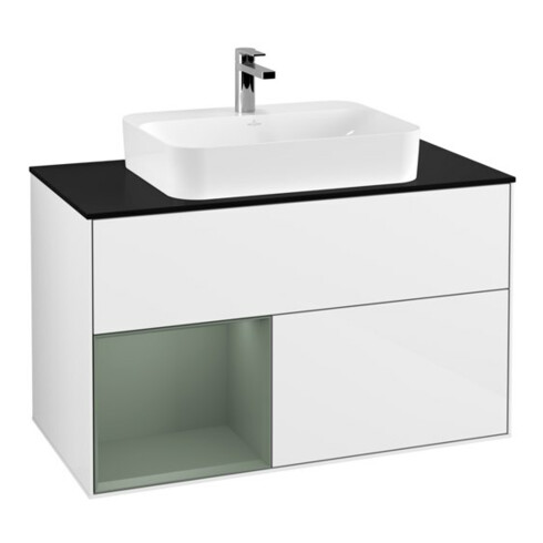 inkl. MwSt.V&B Waschtischunterschrank Finion 100, Pl b m, Rg l Ol m Lac, glo wh. Lac