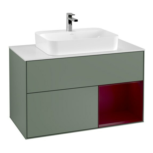 inkl. MwSt.V&B Waschtischunterschrank Finion 100, Pl wh. m, Reg re Peo, Oli. m Lac