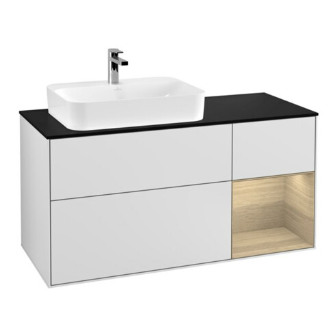 V&B Waschtischunterschrank Finion 120cm, Pl b m, Reg re Oa ven, wh. m Lac