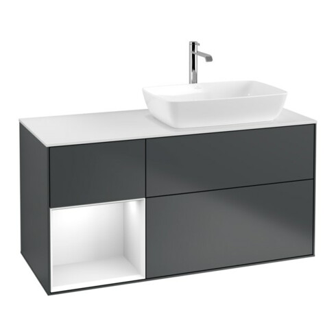 inkl. MwSt.V&B Waschtischunterschrank Finion 120cm, Pl w m, Rg g w Lac, md bl. m Lac