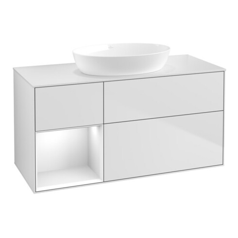 inkl. MwSt.V&B Waschtischunterschrank Finion 120cm, Pl w m, Rg glo wh. Lac, wh. m Lac