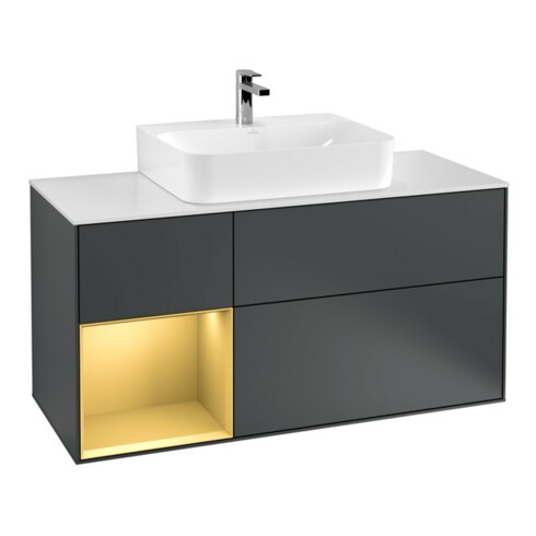 inkl. MwSt.V&B Waschtischunterschrank Finion 120cm, Pl w m, Rg li gol m, md bl. m Lac