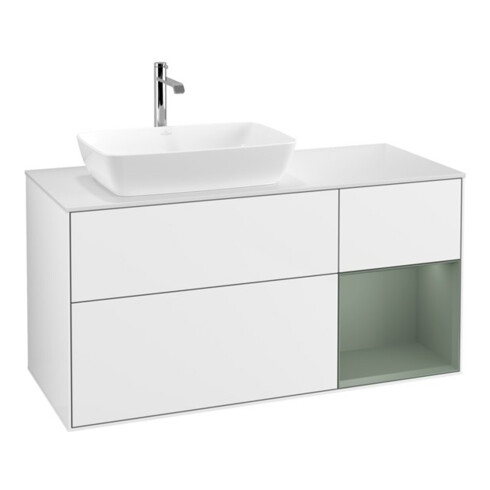 inkl. MwSt.V&B Waschtischunterschrank Finion 120cm, Pl w m, Rg Ol m Lac, glo wh. Lac