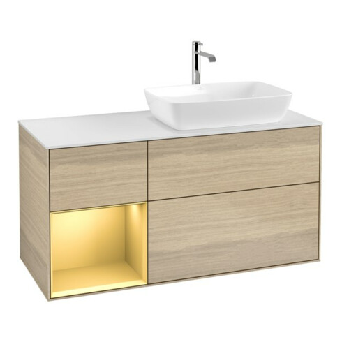 inkl. MwSt.V&B Waschtischunterschrank Finion 120cm, Pl wh. m, Reg gol m Lac, Oa ven
