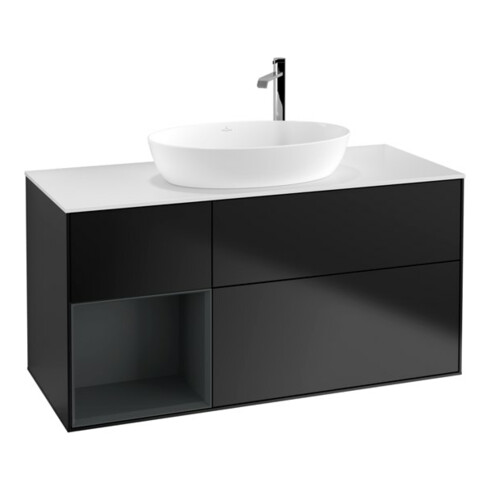 V&B Waschtischunterschrank Finion 120cm, Pl wh. m, Reg md m Lac, bla m Lac
