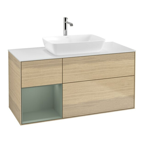 inkl. MwSt.V&B Waschtischunterschrank Finion 120cm, Pl wh. m, Reg Oli. m Lac, Oa ven