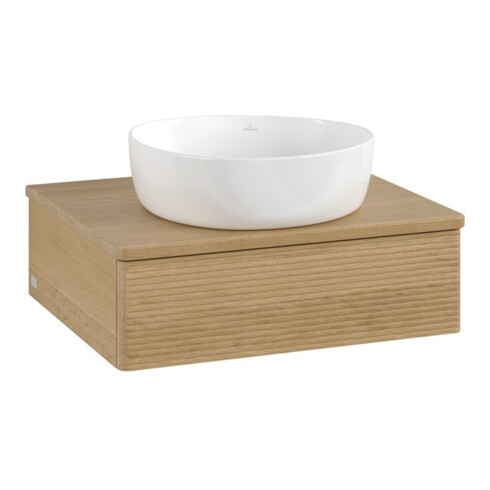 V&B Waschtischunterschrank mit Frontstruktur -Beleuchtung Antao 60x19x50cm, WBP-farbe hon. Oa, honey oak