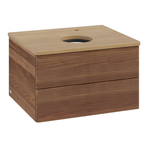 V&B Waschtischunterschrank mit Frontstruktur -Beleuchtung Antao 60x36x50cm, HL, WBP hon. Oa, w. wal