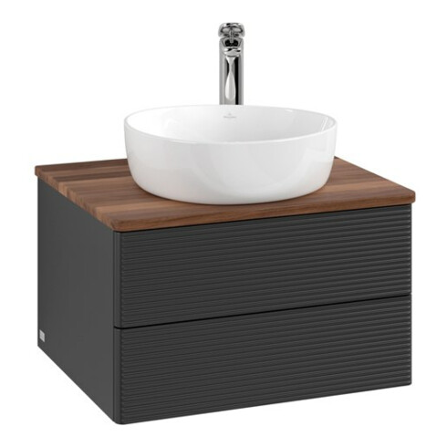 V&B Waschtischunterschrank mit Frontstruktur -Beleuchtung Antao 60x36x50cm, HL, WBP w. wal, bla m Lac