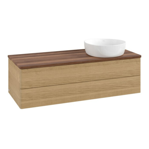 inkl. MwSt.V&B Waschtischunterschrank mit Frontstruktur, mit Beleuchtung Antao 120x36x50cm, WBP-farbe w. wal, honey oak