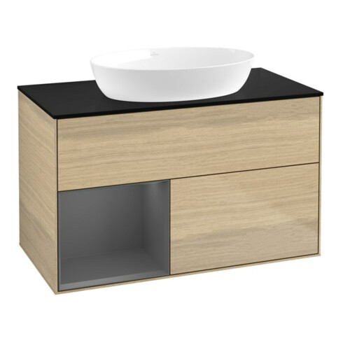 inkl. MwSt.V&B Waschtischunterschrank Wandbeleuchtung Finion 100, Pl b m, Reg Anthrac. m Lac, Oa ven
