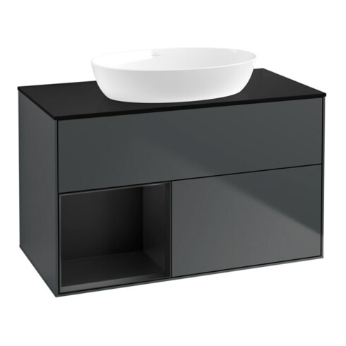 inkl. MwSt.V&B Waschtischunterschrank Wandbeleuchtung Finion 100, Pl b m, Reg bla m Lac, md bl. m Lac