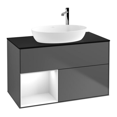 inkl. MwSt.V&B Waschtischunterschrank Wandbeleuchtung Finion 100, Pl b m, Reg glo wh. Lac, Anthrac. m