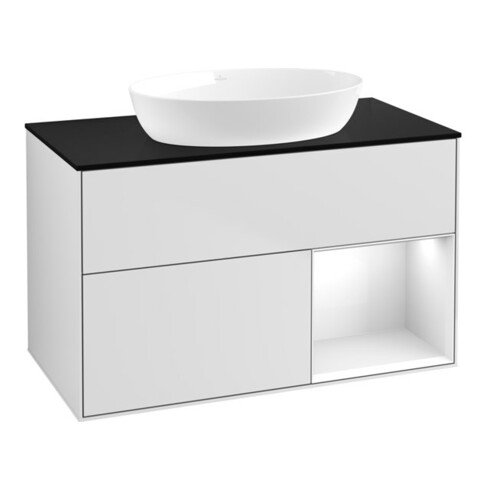 inkl. MwSt.V&B Waschtischunterschrank Wandbeleuchtung Finion 100, Pl b m, Reg glo wh. Lac, wh. m Lac