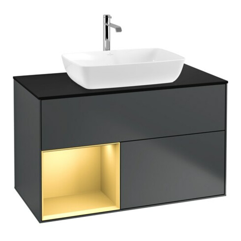 inkl. MwSt.V&B Waschtischunterschrank Wandbeleuchtung Finion 100, Pl b m, Reg gol m Lac, md bl. m Lac