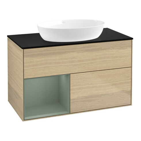inkl. MwSt.V&B Waschtischunterschrank Wandbeleuchtung Finion 100, Pl bla m, Reg Oli. m Lac, Oa ven