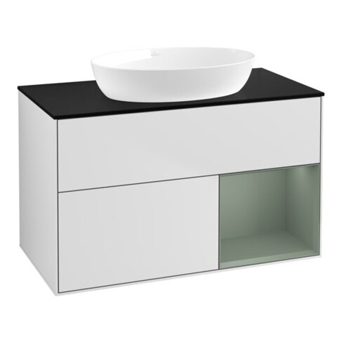 V&B Waschtischunterschrank Wandbeleuchtung Finion 100, Pl bla m, Reg Oli. m Lac, wh. m Lac