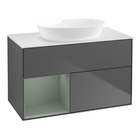 V&B Waschtischunterschrank Wandbeleuchtung Finion 100, Pl w m, Reg Oli. m Lac, Anthrac. m