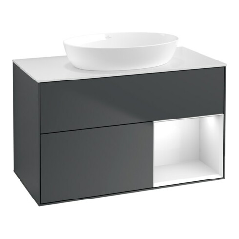 inkl. MwSt.V&B Waschtischunterschrank Wandbeleuchtung Finion 100, Pl w m, Rg g wh. Lac, md bl. m Lac
