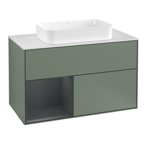V&B Waschtischunterschrank Wandbeleuchtung Finion 100, Pl w m, Rg l md b m Lac, Oli. m Lac