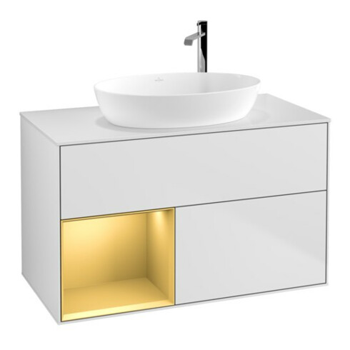 inkl. MwSt.V&B Waschtischunterschrank Wandbeleuchtung Finion 100, Pl wh. m, Reg gol m Lac, wh. m Lac
