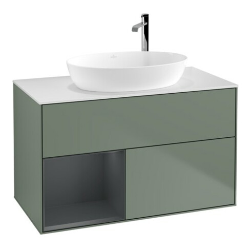 inkl. MwSt.V&B Waschtischunterschrank Wandbeleuchtung Finion 100, Pl wh. m, Reg md m Lac, Oli. m Lac