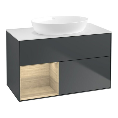 inkl. MwSt.V&B Waschtischunterschrank Wandbeleuchtung Finion 100, Pl wh. m, Reg Oa ven, md bl. m Lac