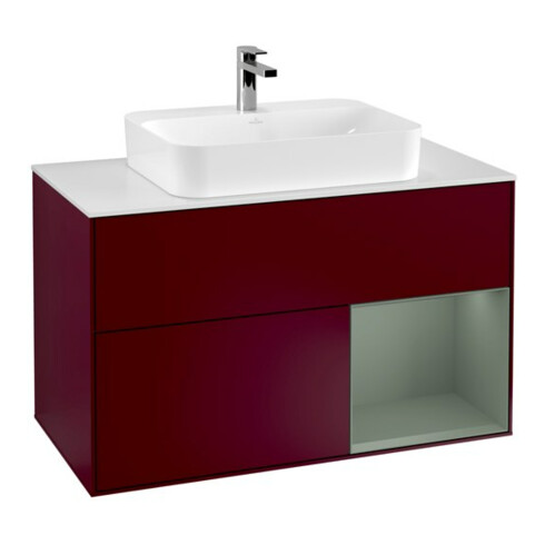 inkl. MwSt.V&B Waschtischunterschrank Wandbeleuchtung Finion 100, Pl wh. m, Reg re Oli. m Lac, Peo m