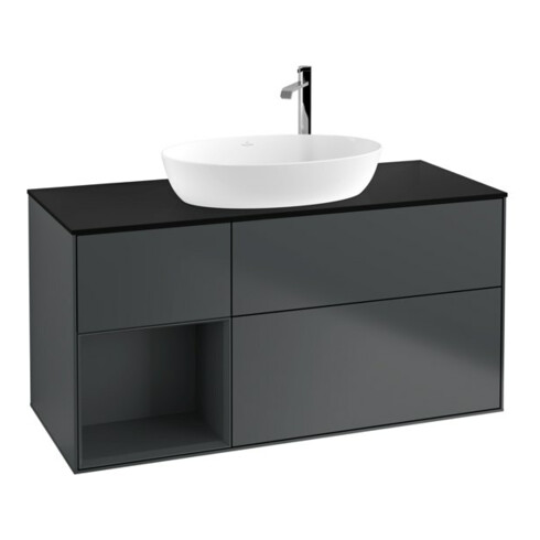 V&B Waschtischunterschrank Wandbeleuchtung Finion 120cm, Pl b m, Rg md m Lac, md bl. m Lac