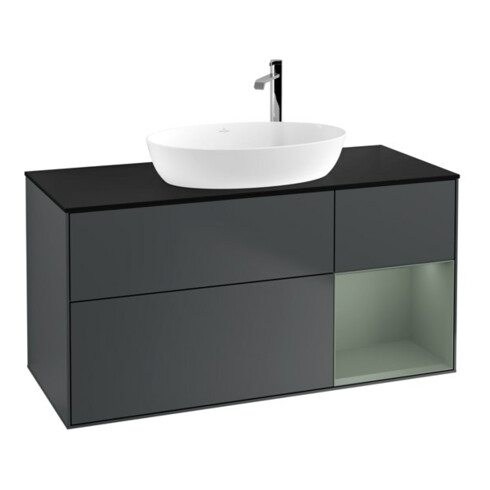 inkl. MwSt.V&B Waschtischunterschrank Wandbeleuchtung Finion 120cm, Pl b m, Rg Ol m Lac, md bl. m Lac
