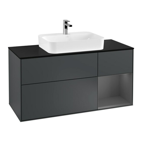 inkl. MwSt.V&B Waschtischunterschrank Wandbeleuchtung Finion 120cm, Pl b m, Rg r A m, md bl. m Lac
