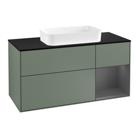 V&B Waschtischunterschrank Wandbeleuchtung Finion 120cm, Pl b m, Rg r A m, Oli. m Lac