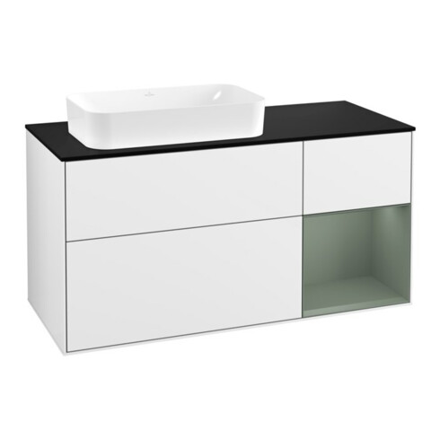 inkl. MwSt.V&B Waschtischunterschrank Wandbeleuchtung Finion 120cm, Pl b m, Rg r Ol m La, glo wh. Lac