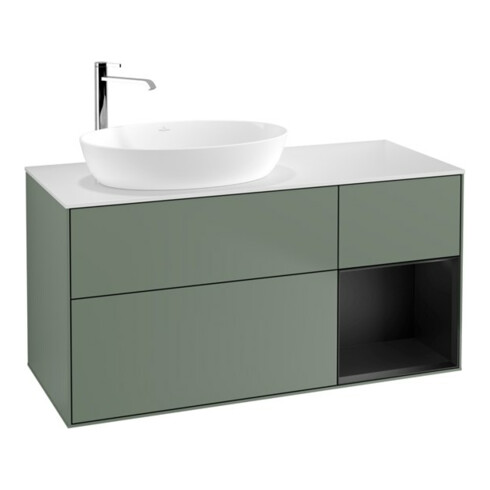 V&B Waschtischunterschrank Wandbeleuchtung Finion 120cm, Pl w m, Reg bla m Lac, Oli. m Lac