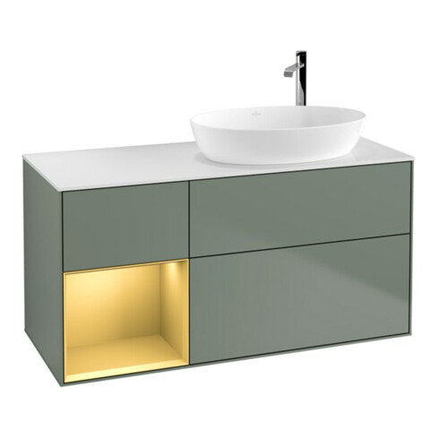 V&B Waschtischunterschrank Wandbeleuchtung Finion 120cm, Pl w m, Reg gol m Lac, Oli. m Lac
