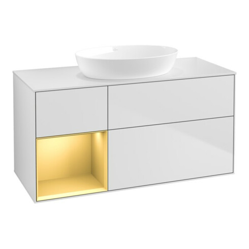 V&B Waschtischunterschrank Wandbeleuchtung Finion 120cm, Pl w m, Reg gol m Lac, wh. m Lac