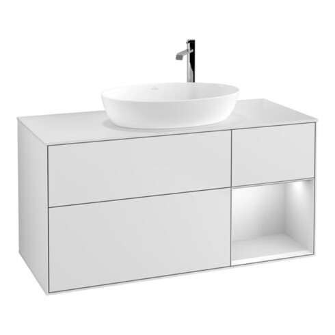 inkl. MwSt.V&B Waschtischunterschrank Wandbeleuchtung Finion 120cm, Pl w m, Reg wh. m Lac, wh. m Lac
