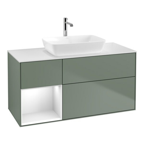inkl. MwSt.V&B Waschtischunterschrank Wandbeleuchtung Finion 120cm, Pl w m, Rg g wh. Lac, Oli. m Lac