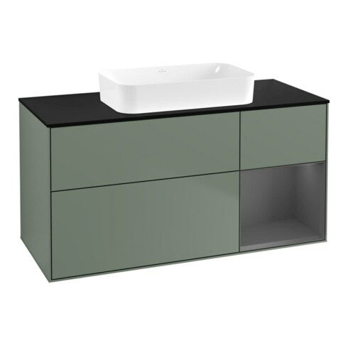 inkl. MwSt.V&B Waschtischunterschrank Wandbeleuchtung Finion 120x60 cm, Reg re Anthrac. m, Oli. m Lac