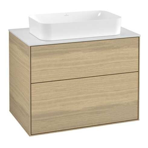 V&B Waschtischunterschrank Wandbeleuchtung Finion 80x60,3cm, Abd.-Pl. wh. matt, Oak Veneer